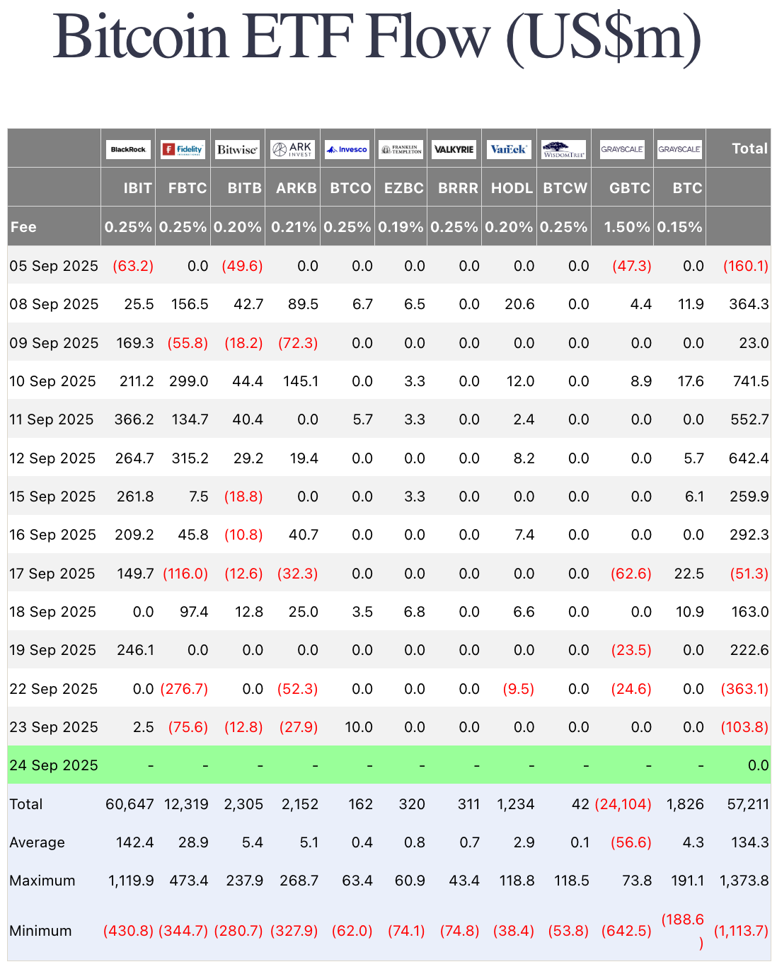 Options flow isn’t doing the bulls any favors. BlackRock’s IBIT has been flashing a bearish put bias for two straight months, with the 1-yr put-call skew turning positive back in July and staying there. The message is clear: traders are paying up for downside protection rather than upside exposure.