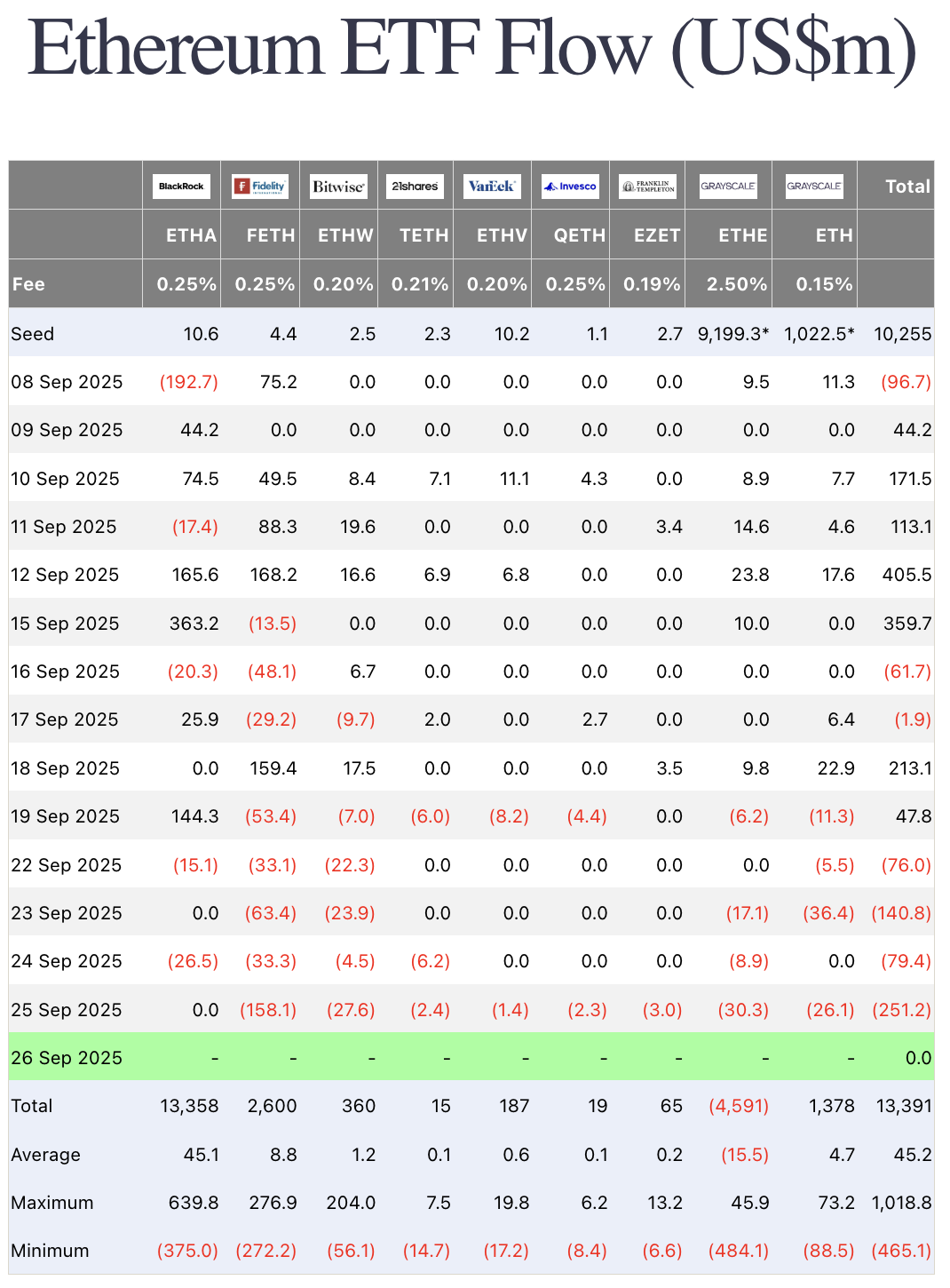 Flows remain a headwind. Bitcoin ETFs shifted into net seller mode with $258 million of outflows, while Ethereum ETFs bled $251 million, four straight sessions of redemptions. Whale wallets have also flipped net sellers, offloading 147,000 BTC since Aug. 21, the largest reduction since the early 2023 bull leg.