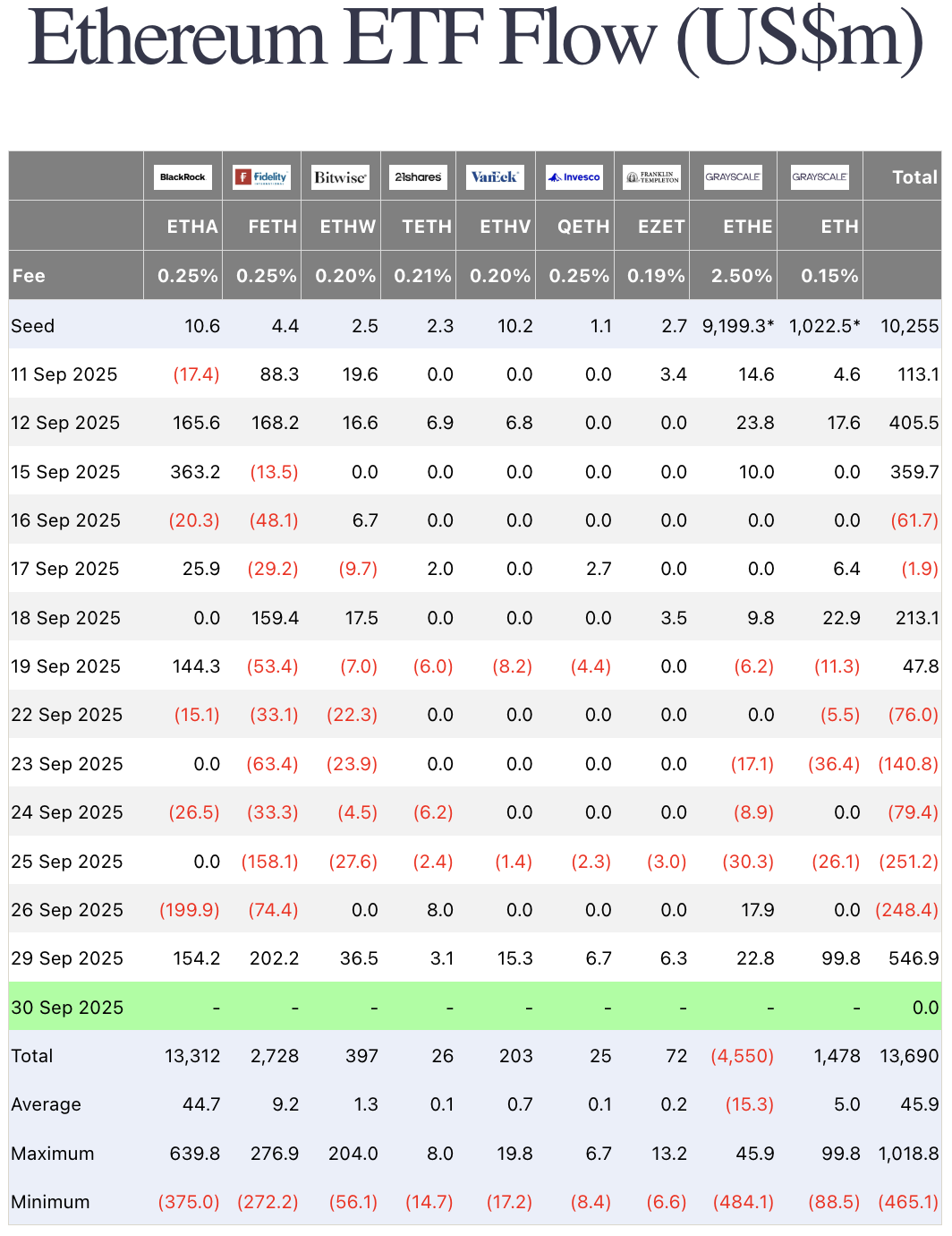 Altcoin action has been heavy to the downside. Most names are in the red, with recent darlings like ASTER and HYPE taking the brunt as unlock schedules run headfirst into fading liquidity. The pullback hasn’t dented ETF optimism, though. The SEC is fast-tracking approval standards across multiple issuers, and a wave of green lights in October looks increasingly likely. That could finally provide a spark for alts heading into what many hope is another classic “Uptober.”